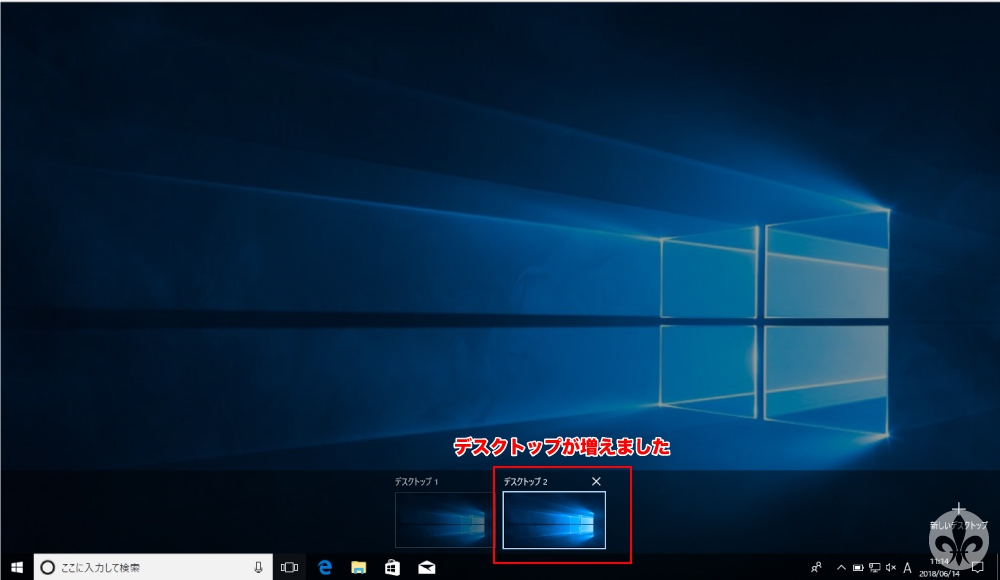 すると右下に「新しいデスクトップ」が現れますので「+」をクリック。